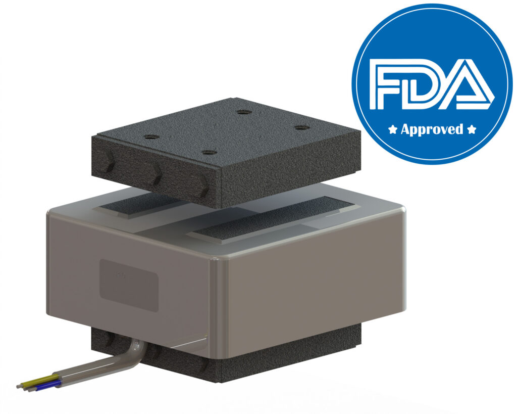 Powder-coated version Description Powder-coated version, fully encapsulated at 900 1/min, 1500 1/min, 3000 1/min or 6000 1/min, power ratings up to 3900 VA Mounting via threaded holes on the base and armature surface Cable version downwards with unshielded or shielded cables The use of a new coating technology allows us to design the vibrating magnet to be smaller in the WI 721 series. This results in significant savings in terms of weight, material and installation space. This optimized surface coating also ensures a consistently high performance, without the usual performance losses that can occur with other systems. The advantages of this new coating are numerous: Use in the pharmaceutical industry Use in the food processing industry with FDA conformity Corrosion protection High temperature resistance Non-flammable Cold resistant Homogeneous coating Solvent resistance High abrasion resistance Thanks to these properties, the WI 721 series is ideally suited for demanding applications, especially in environments that require high standards of hygiene, durability and performance. Benefits Corrosion protection through powder coating FDA-compliant (Food and Drug Administration) Optimum size/performance ratio Good adjustability Power ratings up to 3900 VA Also for low-frequency applications Peak tractive force up to 6900 N Flat designs Typical applications Packaging and weighing industry for feeding and sorting processes, automation processes using drives with vibrating magnets, particularly suitable for the food and pharmaceutical industries (FDA-compliant) Technical data Types Max. nominal air gap[mm] Power at 6000 1/min [VA] Nominal current=thermal nominal current at 230V [A] Peak tractive force at nominal air gap [N] Power at 3000 1/min [VA] therm. Nominal current at 230V [A] Peak tractive force at nominal air gap [N] Weight magnet [kg] Weight armature [kg] REOVIB WI 721/10 2,5 320 1,4 230 280 1,2 229 2,1 0,34 REOVIB WI 721/12 3 450 1,95 330 425 1,85 318 2,8 0,62 REOVIB WI 721/14 3 1200 5,2 850 1200 5,2 1410 6,9 1,45 REOVIB WI 721/16 3 2200 9,5 1590 1890 8,2 2620 10,5 2,6 REOVIB WI 721/18 3 – – – 3900 16,9 6900 28 9 Dimensions in mm Types a b c d f1 f2 f3 g h i p r REOVIB WI 721/10 100 68 67 – 62,5 12,5 9 67 39 18,5 30 M6 REOVIB WI 721/12 100 100 67 40 62,5 15,5 9 67 71 18,5 30 M6 REOVIB WI 721/14 155 110 109 – 91,5 23,5 15 109 69 27,5 50 M10 REOVIB WI 721/16 155 168 109 80 91,5 23,5 15 109 127 27,5 50 M10 REOVIB WI 721/18 230 170 170 65 129,5 42,5 18 170 121 48,5 75 M12 Certifications