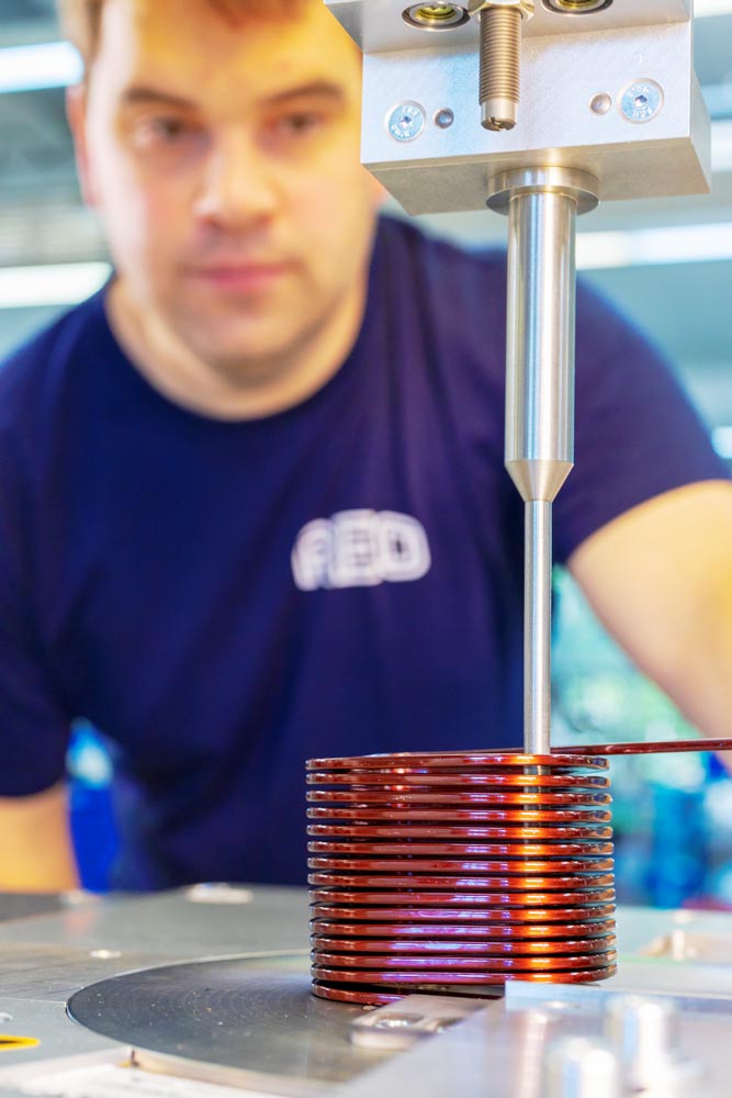 “This edge-winding technology is an innovation from our development team, which is constantly researching the latest technologies and always comes across new approaches as a result. We recognised the opportunities that came with this new winding technology and have been able to start small scale or serial production since 2020, offering our customers extremely fast delivery times. In particular, the impressive cooling feature in the N CNW series is enabled through the single-layer structure with alternative materials and means insulation material often becomes unnecessary. This has two benefits, on one hand, this results in smaller dimensions and lower weight, and on the other, the product is more durable and there are more application possibilities compared to traditional winding technologies.”